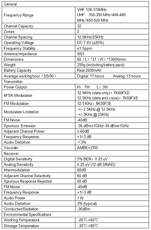 BF-TD872 is a powerful radio with a long battery life. (digital 17h& analog 13h)